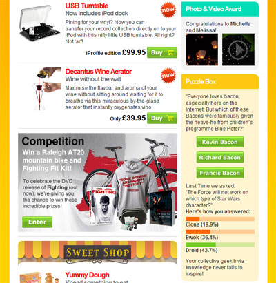 But I can see why they did it – by making their email so detailed they run the risk of you forgetting the products at the top – this is quite long as email newsletters go. So it’s just as well to have them there. However I think it’s snappy enough that you can skim browse it and in a quick scroll get back up there again.  Good work Firebox!